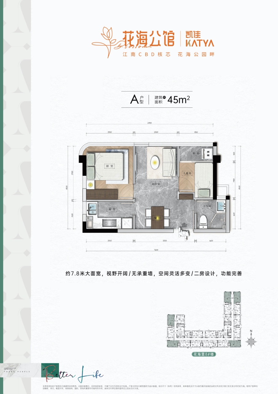 低总价与高流动性:以约2.75万元/平方米的均价计算,45平方米的主力户型总价控制在约120万元左右。这种低总价特点,一方面降低了购房门槛,另一方面也使该产品在二手交易市场中更具流动性,易于变现。