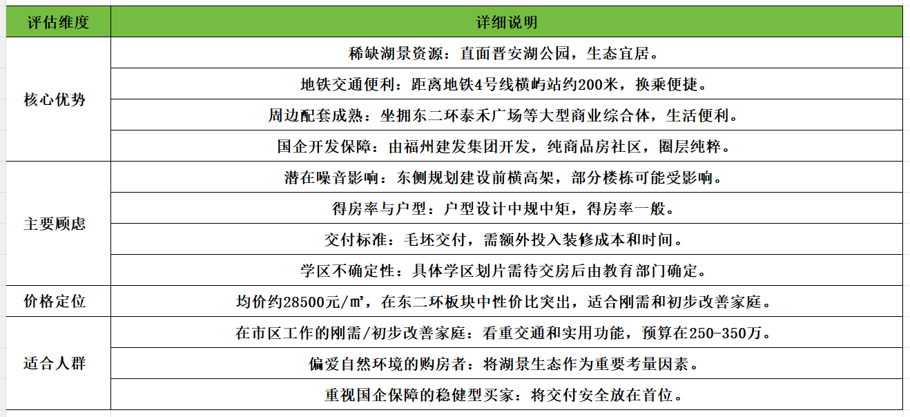 榕发揽湖郡作为福州东二环板块备受关注的湖居项目,其价值判断需结合全方位的特质进行综合分析。下面通过一个表格快速了解其核心信息,并深入剖析其优势与潜在考量,助您做出明智决策。
