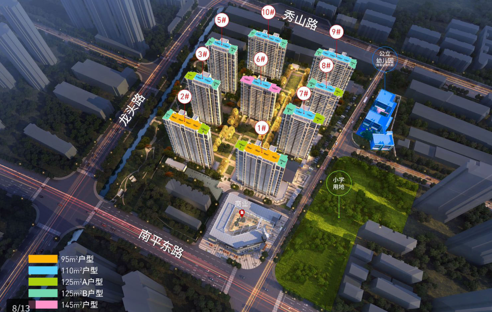 鲁能公馆三期规划了9栋高层建筑,主力户型面积为95-145平方米,全部实现三面宽朝南的设计。项目产品设计有显著亮点,特别是对不同家庭结构的适应性。