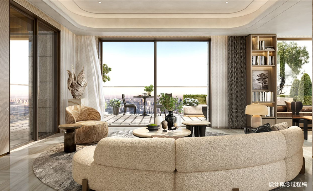 户型设计采用270° IMAX端厅布局,突破了传统住宅的“盒子感”,使客厅成为连接自然的全景社交场。