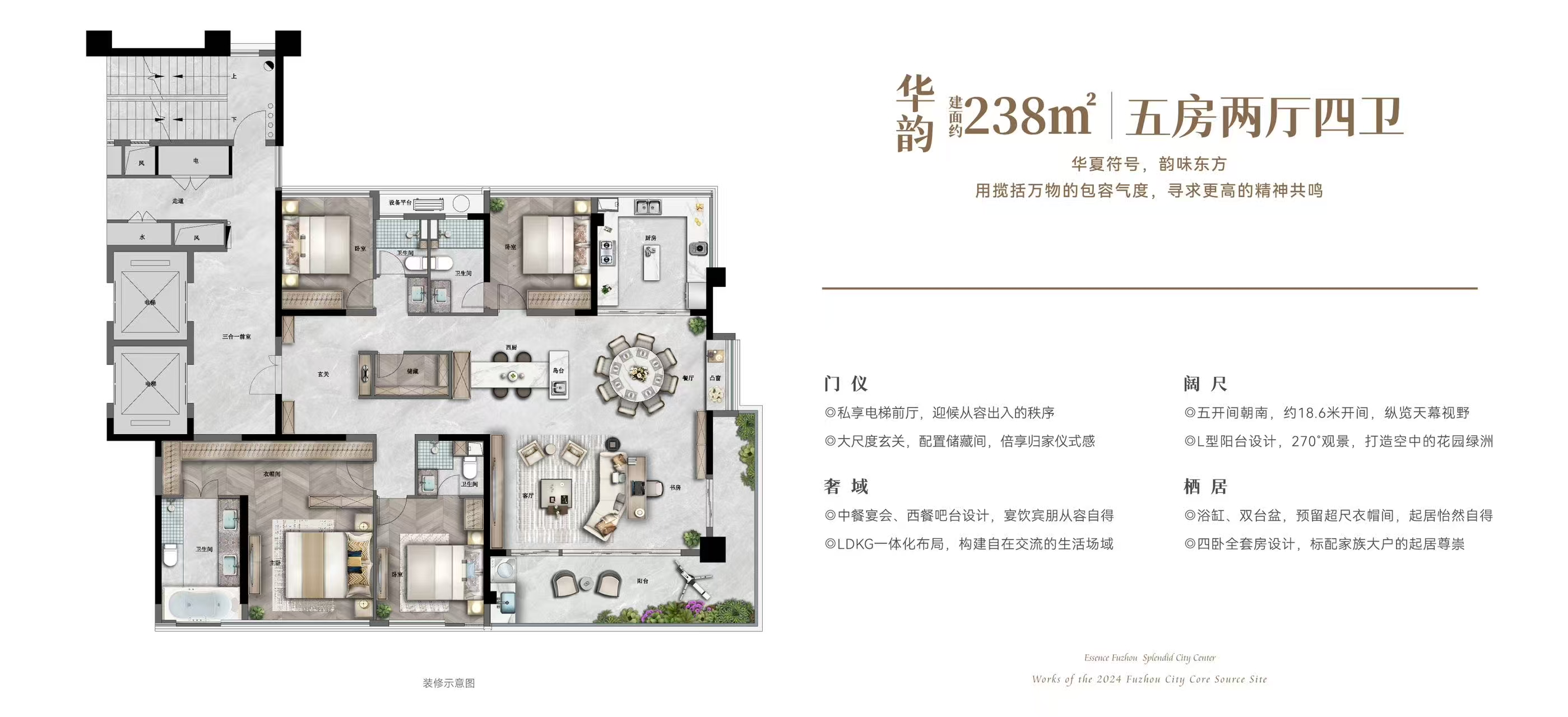 户型设计方面,榕发锦珹大观主打129-238平方米的四至五房改善大平层,产品线较为纯粹。