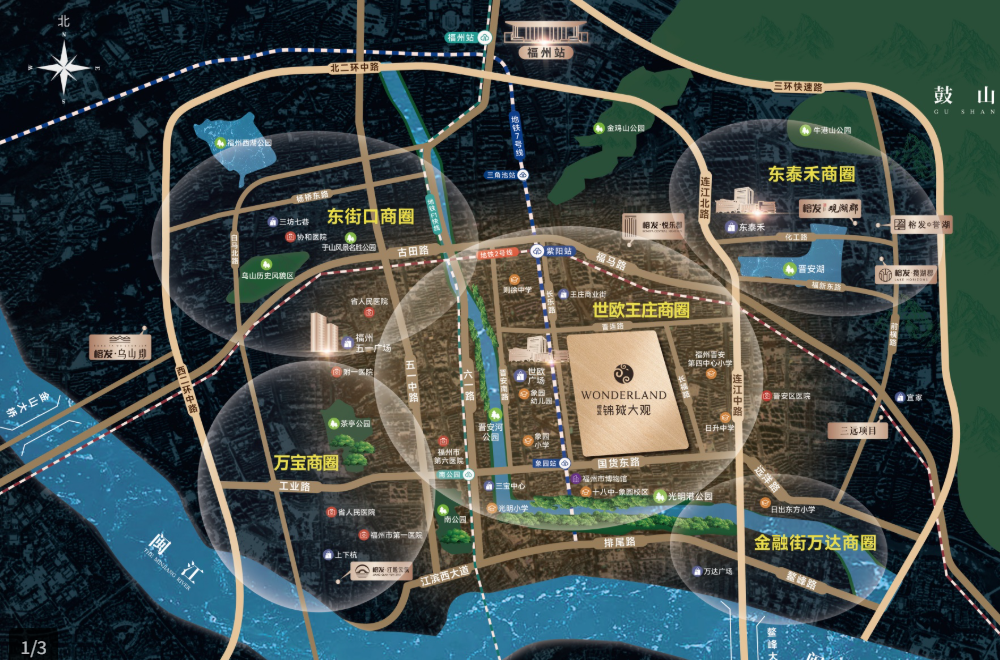 项目地处晋安、鼓楼、台江三区交汇的黄金区位,属于福州传统公认的繁华市中心——王庄板块。