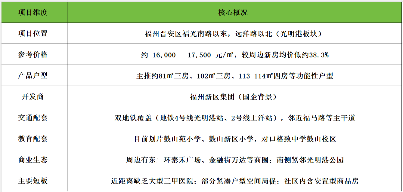 福州新投映万合作为当前福州楼市的一个热点项目,凭借其突出的价格优势主城区的区位,吸引了众多购房者,尤其是预算有限但又希望留在主城区的年轻置业者。下面通过一个表格,快速了解其核心情况。