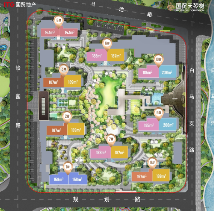 项目由千亿国企国贸地产打造,是“天琴系”高端产品线的延续之作。整个社区由9栋25-32层的高层住宅组成,总户数526户,容积率为3.2。