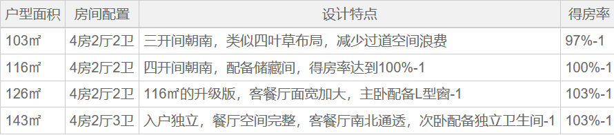 建发国贸·望樾的主力户型涵盖103㎡、116㎡、126㎡和143㎡,均为四房设计。