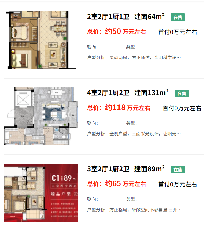 具体户型包括70平方米的二居室,64-112平方米的三居室,以及138-170平方米的四居室。