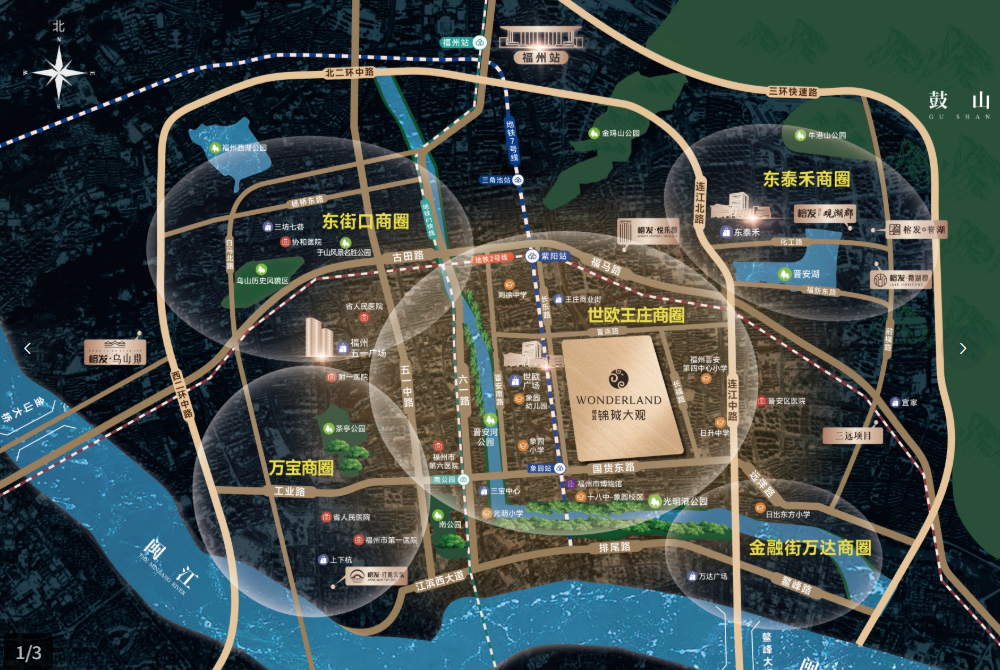 榕发·锦珹大观的位置选择,彰显了开发商对城市价值的深刻理解。项目坐落于晋安区王庄片区,恰好位于晋安、鼓楼、台江三区交汇的核心地带。