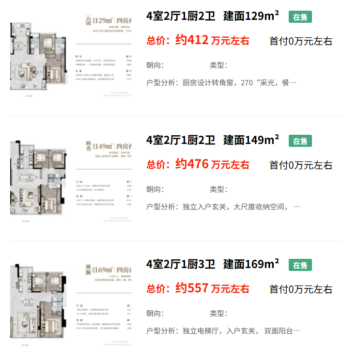 榕发·锦珹大观主打建面约129-239平方米的纯粹大户型,全社区采用两梯两户的T2户型设计。