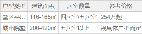 根据最新信息,项目的参考均价约为16999元/㎡,参考总价从254万到368万不等。下表展示了不同户型的基本信息: