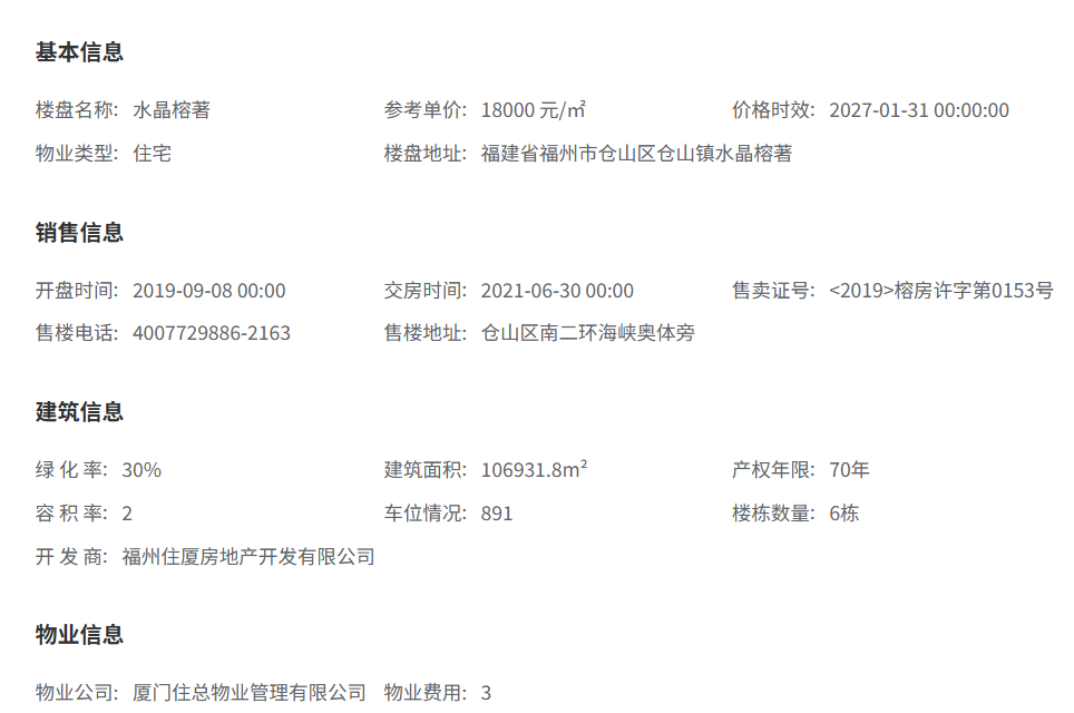 水晶榕著的开发商为福州住厦房地产开发有限公司,是厦门住宅集团在福州的首个项目。