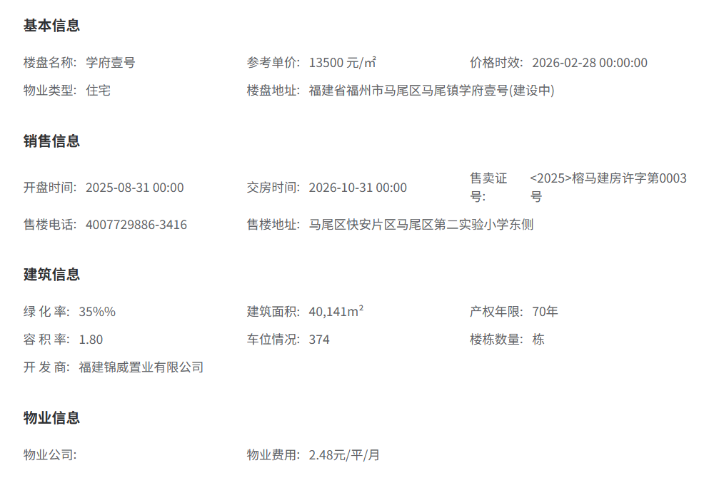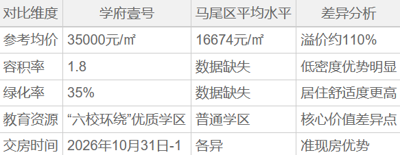 学府壹号最新参考价格为35000元/平方米。这个价格需要放在区域背景下理解:马尾区新房均价约为16674元/㎡,二手房均价约9761元/㎡。