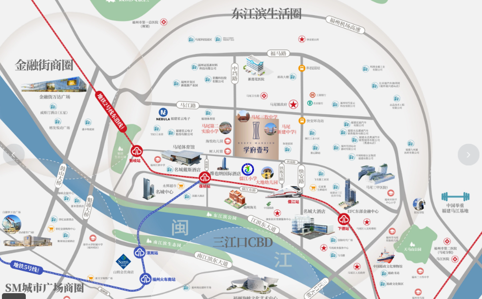 交通方面,项目周边3公里内有5个地铁站,最近的是儒江站,直线距离约1.2公里,实际步行约15分钟。未来福州市地铁2号线东延线的规划建设将进一步提升区域交通便捷性。