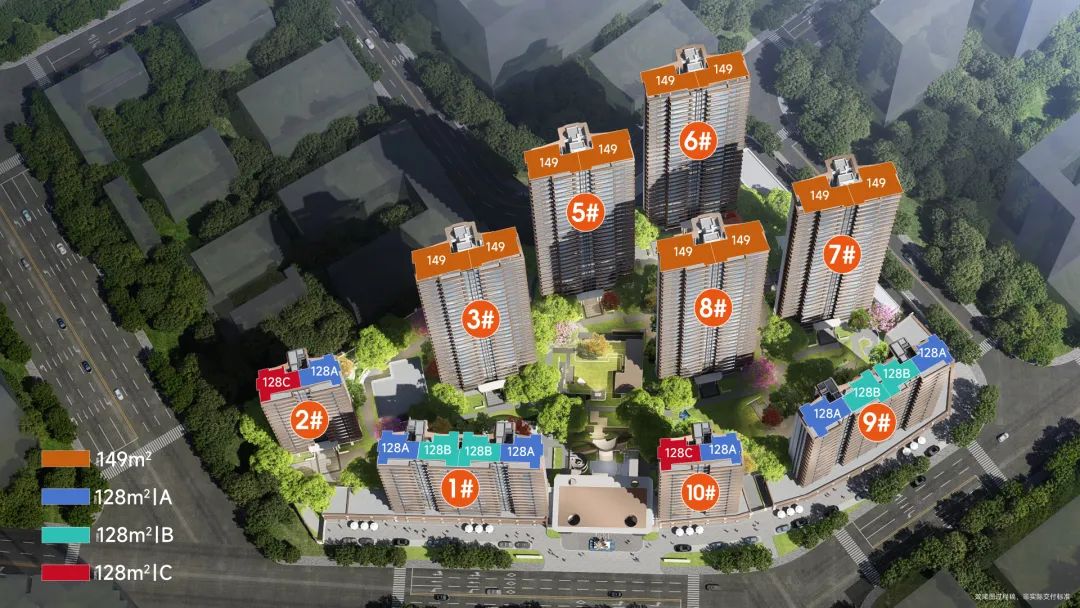 户型方面,主推的128㎡和149㎡四房户型,层高达到3.05米,得房率高达94%-99%。128㎡户型注重功能分区,149㎡户型则拥有超过16米的南向四开间面宽,空间感更加开阔。