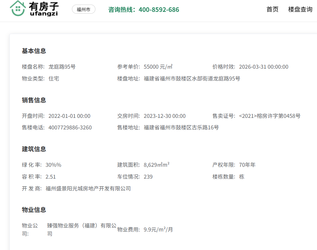 龙庭路95号的开发商为福州盛景阳光城房地产开发有限公司,隶属于曾经的闽系巨头——阳光城集团 。在过去的地产黄金时代,阳光城在福州确实留下了不少标杆之作,但时至今日,房地产行业的逻辑已彻底改变。