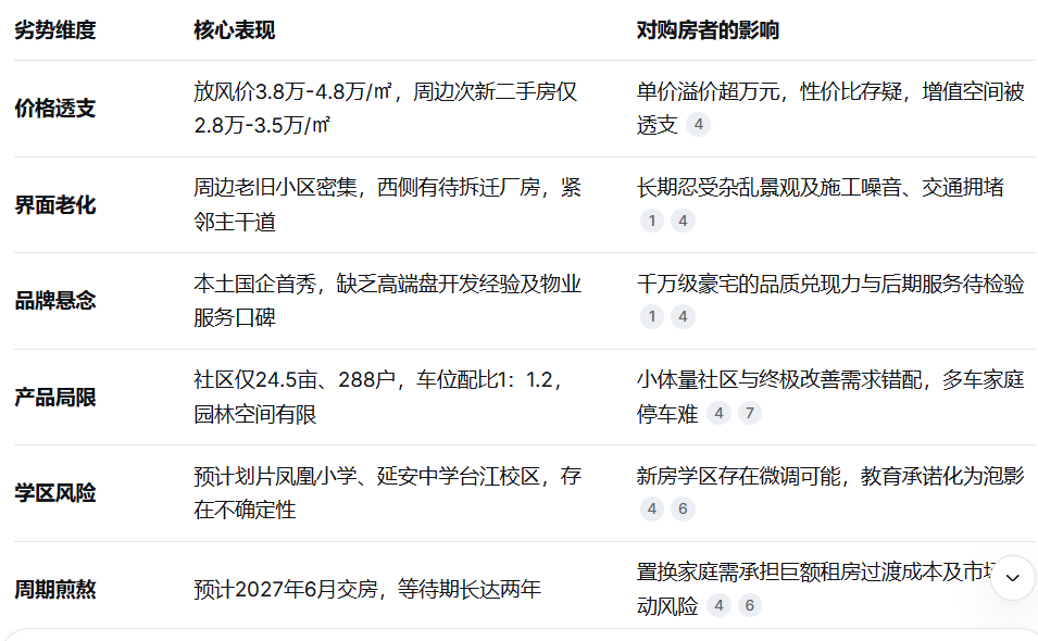 这意味着凤鸣天玺的单价溢价超过了1万元/平方米,几乎是周边二手房价的1.5倍。更严峻的是,这一价格线已经直接对标甚至超越了一些拥有一线江景或更强品牌溢价的头部楼盘(如融侨外滩、建发朗云等) 。对于投资客而言,这种过高的买入价意味着未来的增值空间已被严重透支。