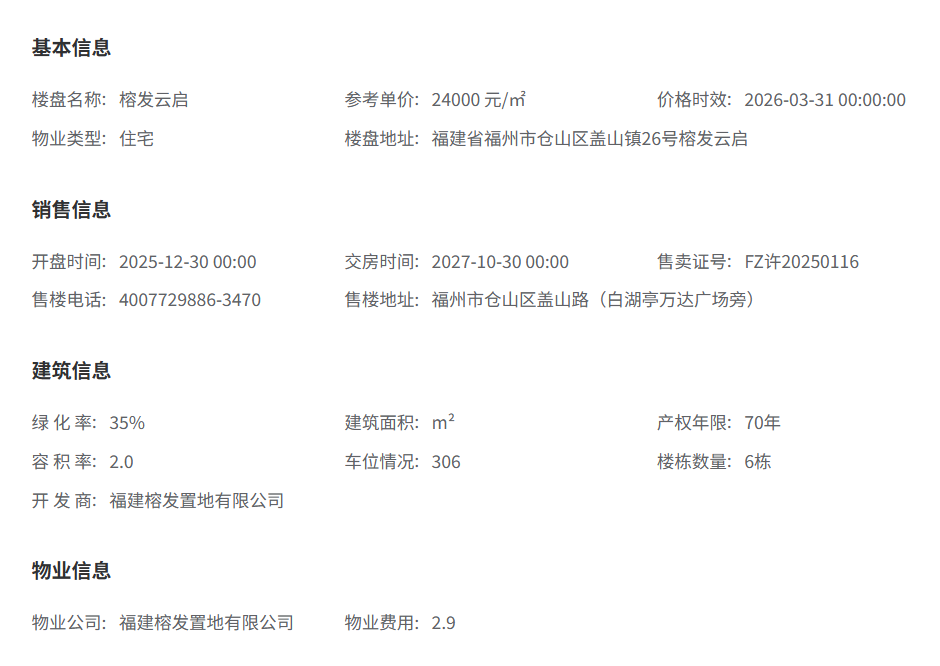 对于购房者而言,福州榕发云启的交房时间是一个巨大的时间成本考验。根据多个房产信息平台核实及福州市不动产登记交易平台公示的信息,虽然项目已在售,但目前仍处于紧锣密鼓的建设阶段 。