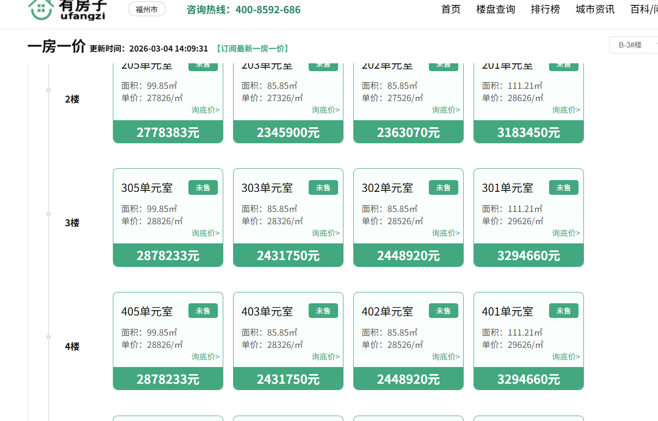 福州榕发云启楼盘价格目前无疑是南二环板块的“天花板”之一。根据公示信息,其预售均价已触及约30000元/㎡,部分户型甚至更高 。