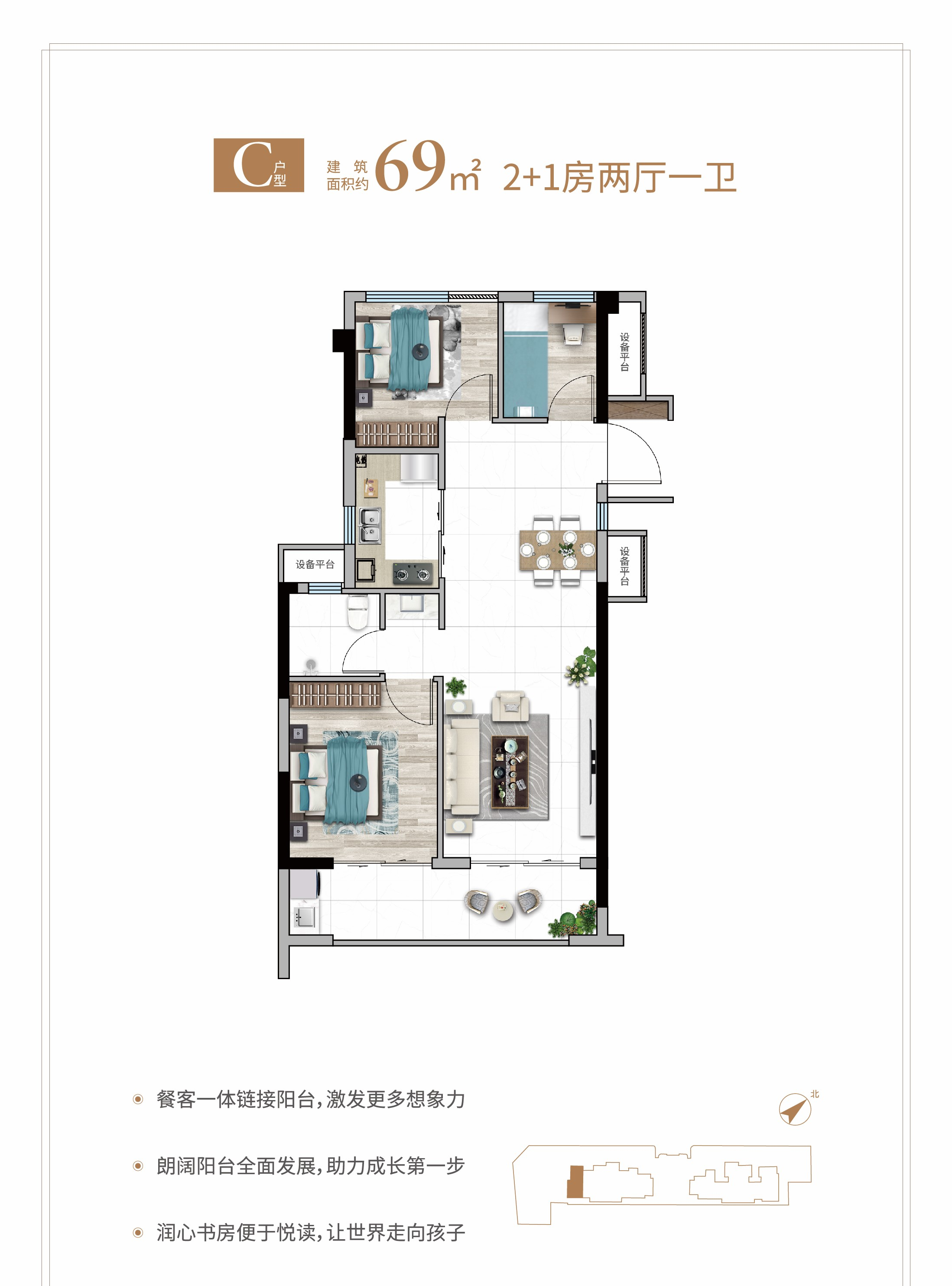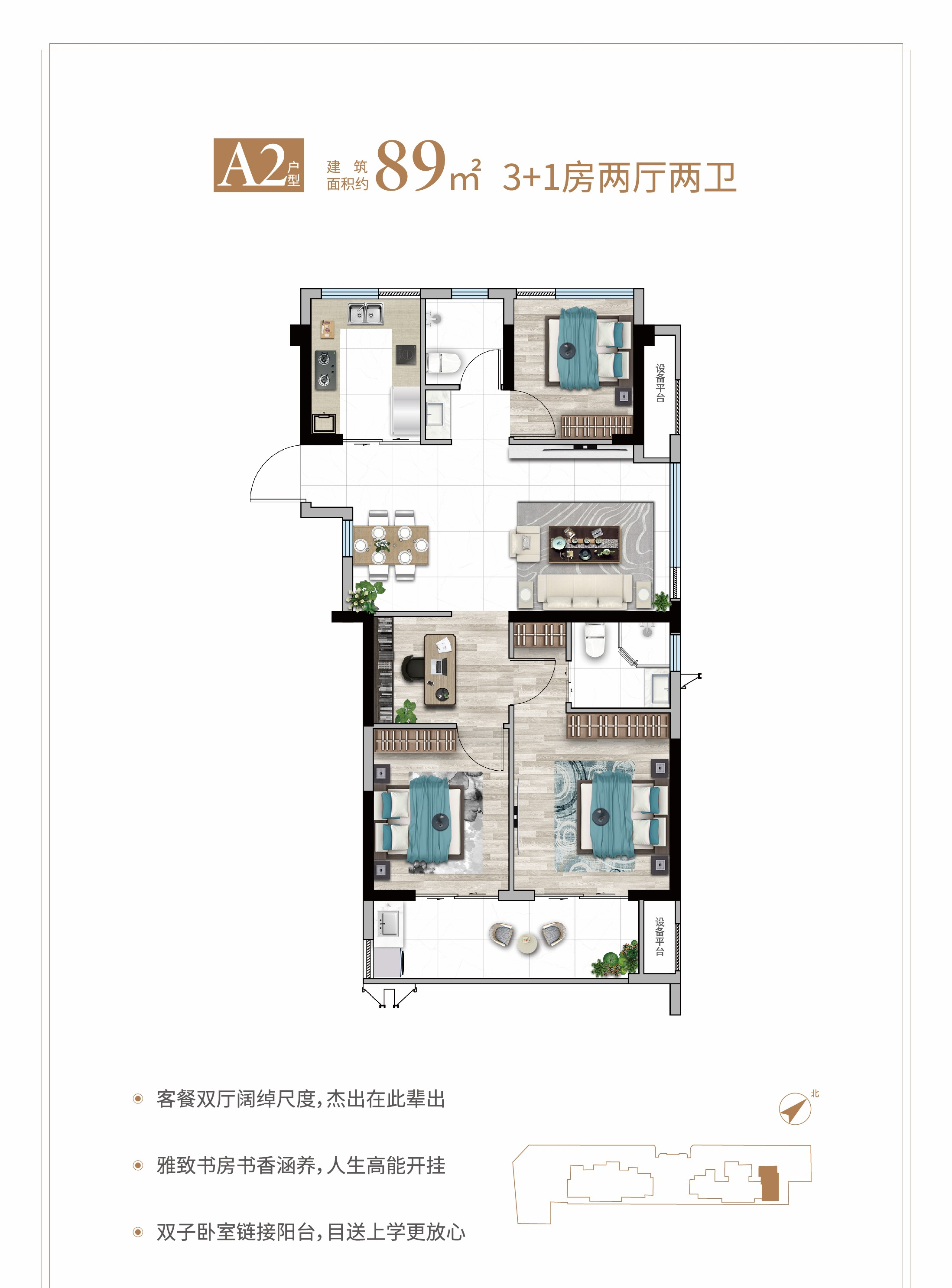 学府壹号主推69-89㎡的紧凑型二至三房 。这种面积段的定位,赤裸裸地揭示了其“总价克制”的产品逻辑,但也暴露了居住舒适度的让步。