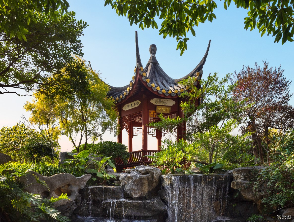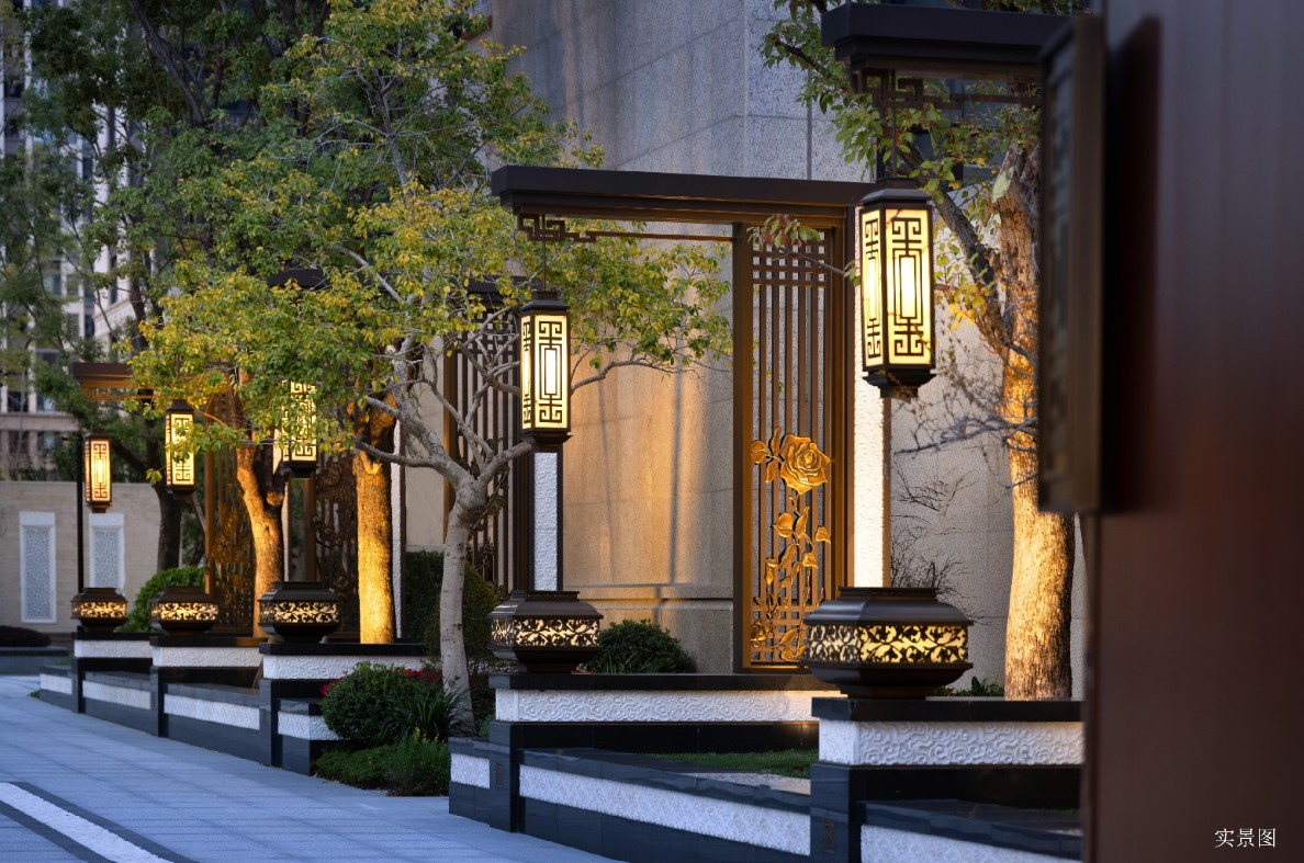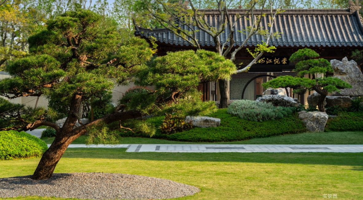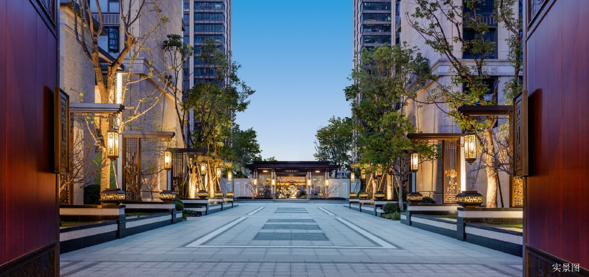 园林美学:项目秉承“移天缩地在君怀,九州胜景汇一园”的理念,打造了“九州胜景”园林。遍寻全国移植而来的200余种成树、全铜铸的大门、重檐庑殿的中式元素,处处彰显着中式豪宅的仪式感。