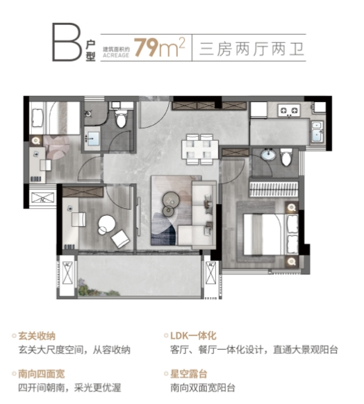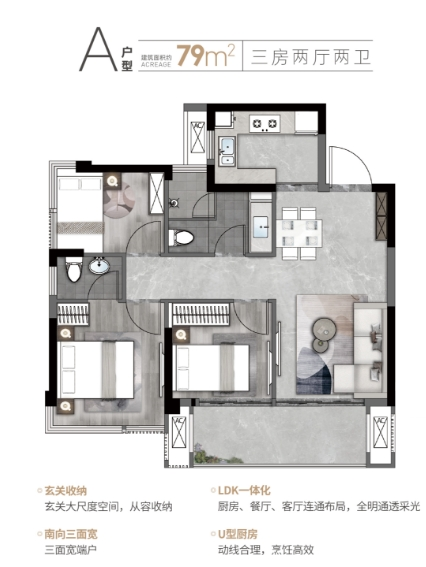 五、 户型亮点:79㎡做出“大三房”的极致设计