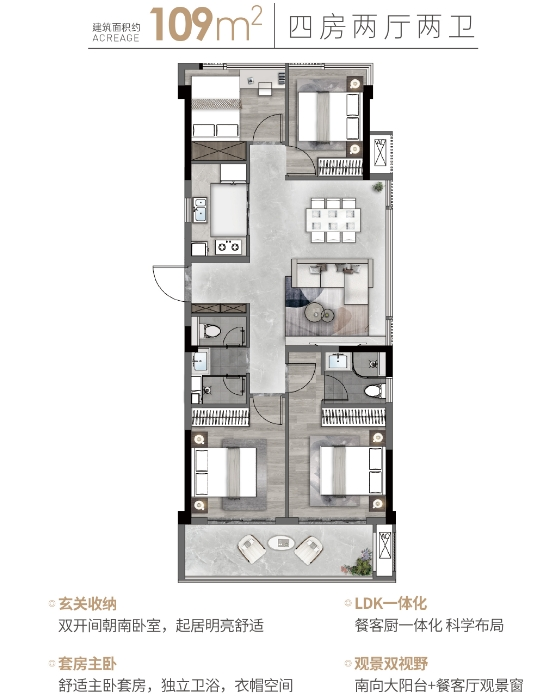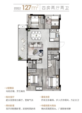 105-127㎡四房:全明格局,三代同堂也能互不干扰。