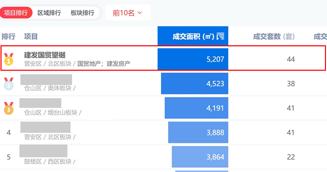 2026年3月福州五区商品住宅销售金额TOP10中,建发国贸望樾以1.15亿元销售额、0.51万㎡销售面积、43套成交量位列第二。但在销售套数排名中,该项目实际表现更为突出。