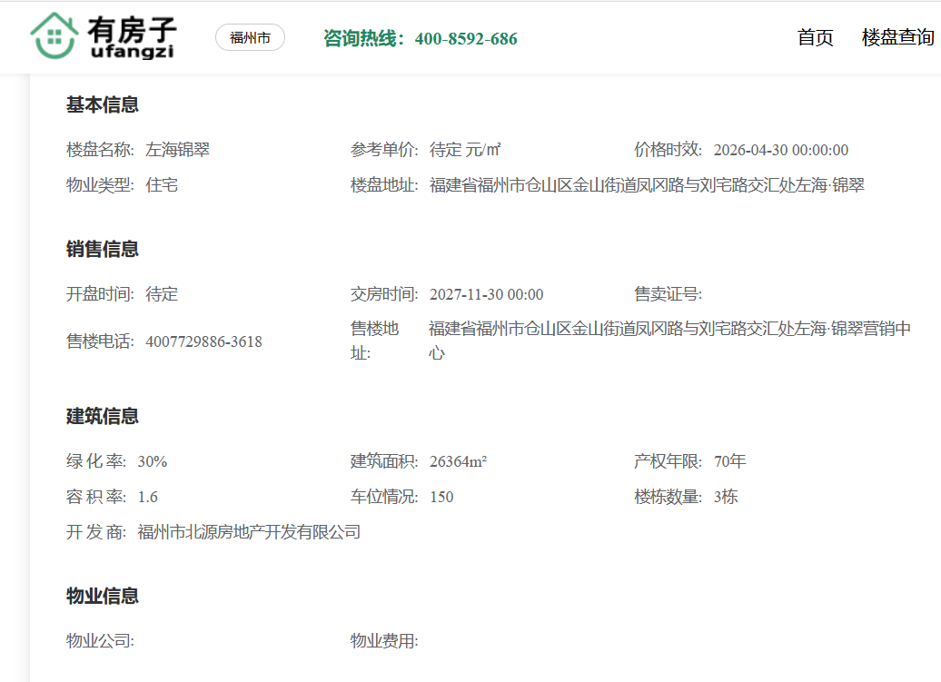 作者:魏 2026-04-10 10:06:50 1027 楼盘: 左海锦翠 发布时间:2026-04-10 10:06:50