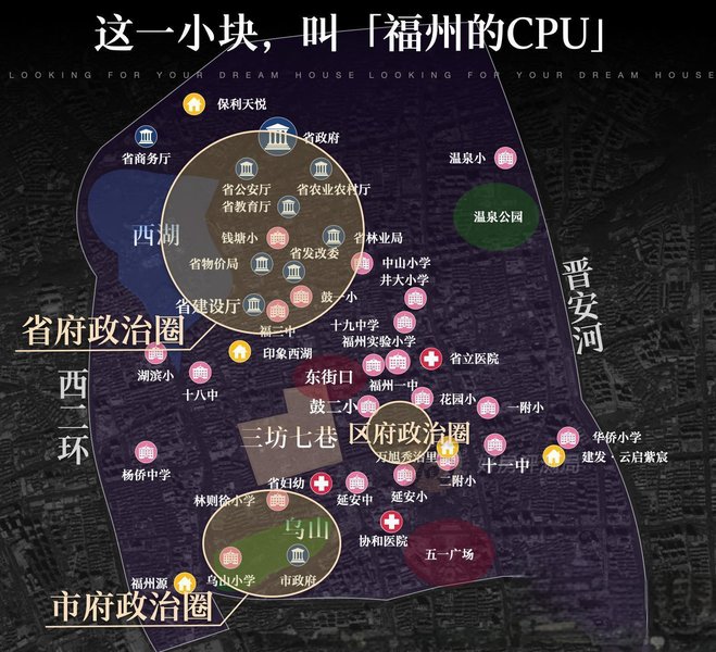 建发紫宸的核心竞争力,首先且根本地,根植于其无可替代的地段。项目坐落于鼓楼区东水路与温泉支路交叉口,这里不仅是福州行政、文化、商业资源的绝对中心,更是一环内近乎绝版的住宅用地。周边半径一公里范围内,几乎汇集了城市顶级资源:省立医院、协和医院等三甲医院提供生命健康保障;东街口商圈与五四路CBD构成了福州最繁华的消费与商务场;划片鼓楼区第二中心小学(钱塘小学教育集团成员)及对口延安中学的优质教育组合,构成了强大的学区吸引力;温泉公园、晋安河公园则提供了稀缺的城市绿肺。这种资源密集度,在福州新建项目中已难觅其二。