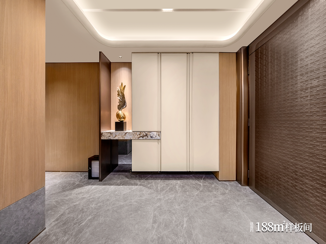 188㎡户型采用四房三卫布局,四面宽朝南,双入户设计,大竖厅布局,是项目的“入门级硬通货”。233㎡户型则提供了更宽敞的生活空间。333㎡户型堪称项目的“封神之作”,采用五房六卫布局,LDKG一体化公区面积超过一百平方米,主卧空间超过55平方米。部分端头户型还能享受270°的环幕视野,将三坊七巷和西湖美景尽收眼底。